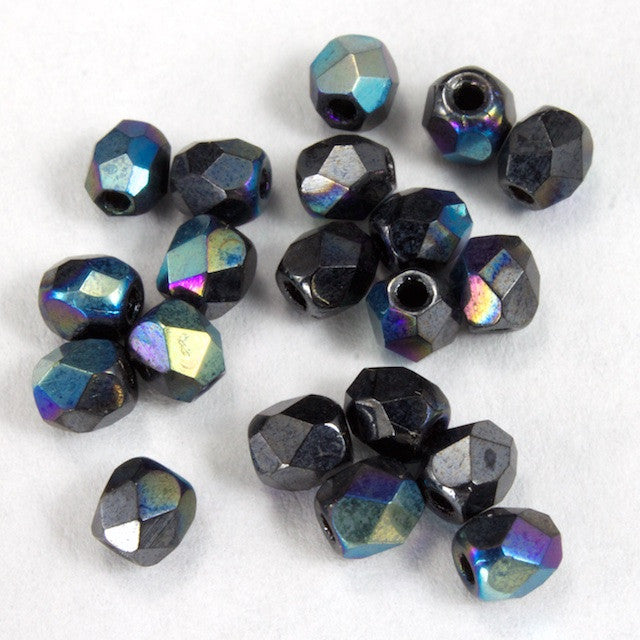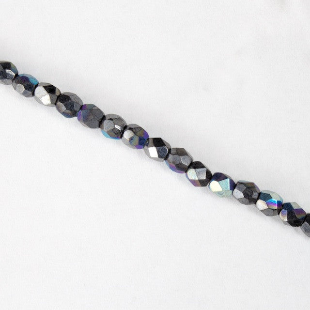 3mm pressed glass faceted round "Fire polished" bead.