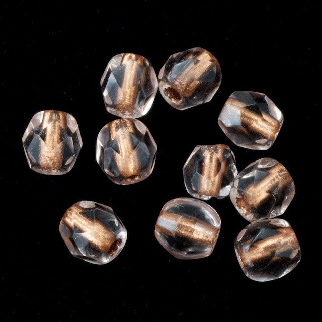 4mm Copper Lined Rose Fire Polished Bead (50 Pcs) #GBB108