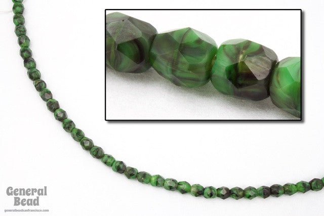 4mm Green/Black Two Tone Fire Polished Bead (50 Pcs) #FPX066