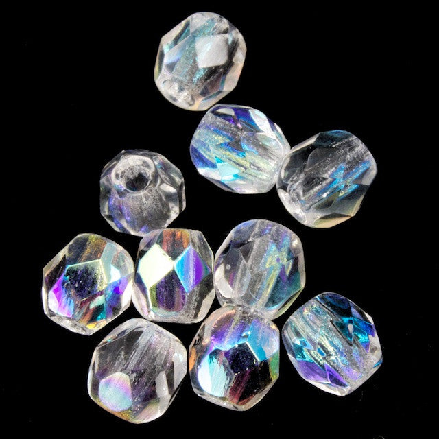 4mm pressed glass faceted round "Fire polished" bead.
