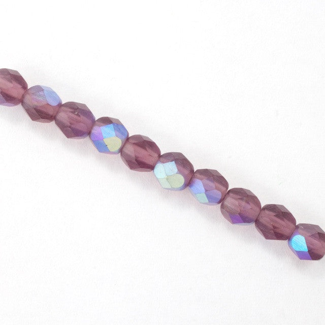 6mm pressed glass faceted round "Fire polished" bead.