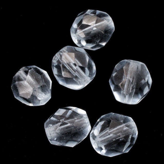 8mm pressed glass faceted round "Fire polished" bead.