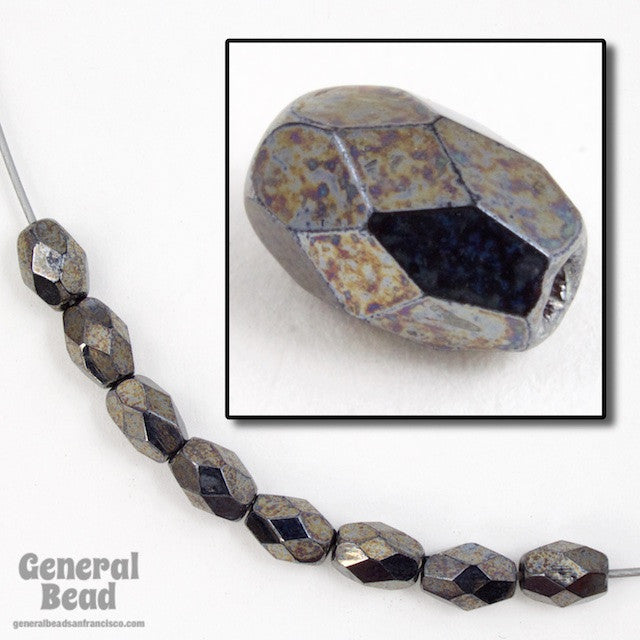 4mm x 6mm pressed glass faceted oval bead in gunmetal.