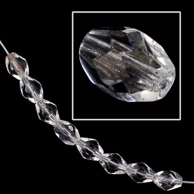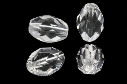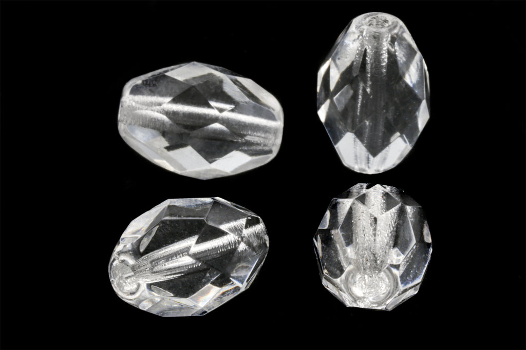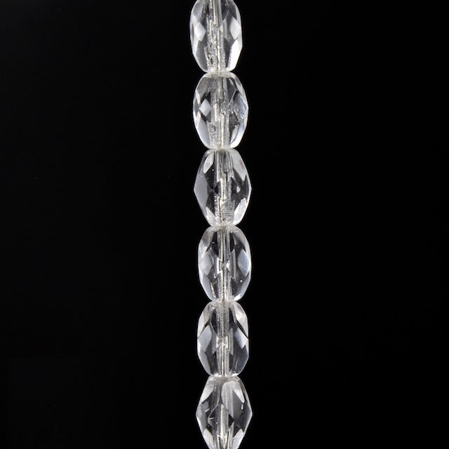 8mm x 12mm pressed glass faceted oval "Fire polished" bead.
