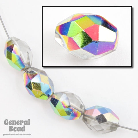 8mm x 12mm pressed glass faceted oval "Fire polished" bead.