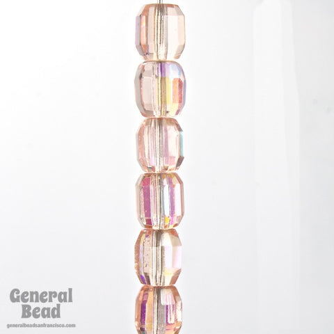 7.5mm x 7mm pressed glass faceted "Fire polished" barrel bead.