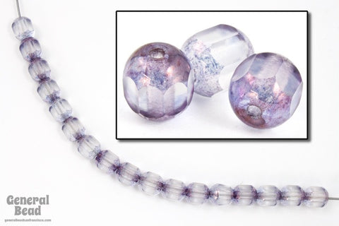 6mm pressed glass cathedral bead in transparent alexandrite and gold luster.