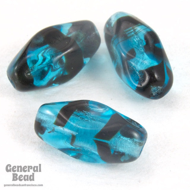 7mm x 12mm glass Baroque style dimpled oval bead with lengthwise standard hole.