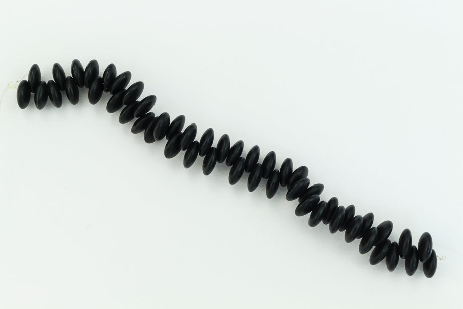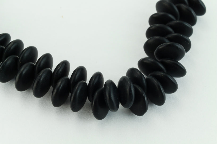 6mm matte opaque black lentil bead. Standard hole near edge.