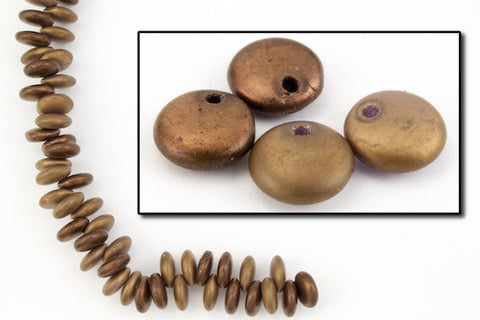 6mm matte metallic bronze lentil bead. Standard hole near edge.