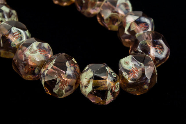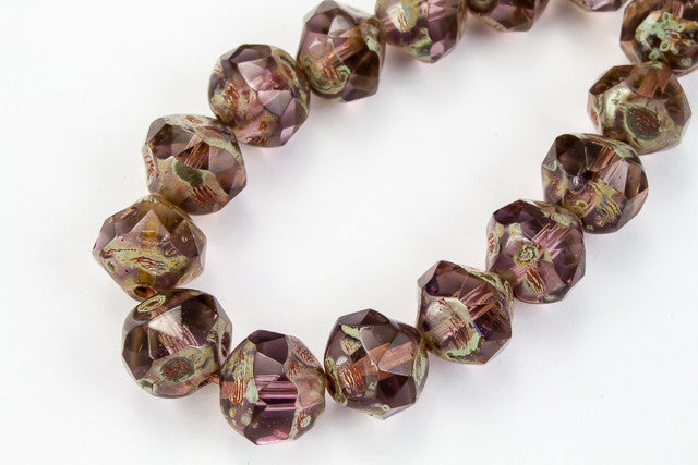 8mm glass irregular cut baroque bead in transparent amethyst with Picasso finish.