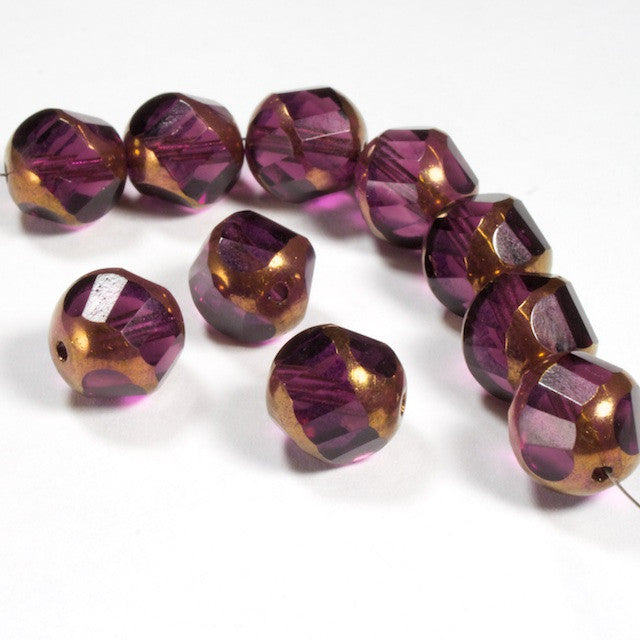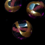 10mm pressed glass swirl bead in amethyst with bronze edges.