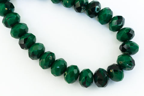 6mm x 8mm Tr./Op. Forest Green/Jet Picasso Faceted Rondelle (25 Pcs) #GFD317