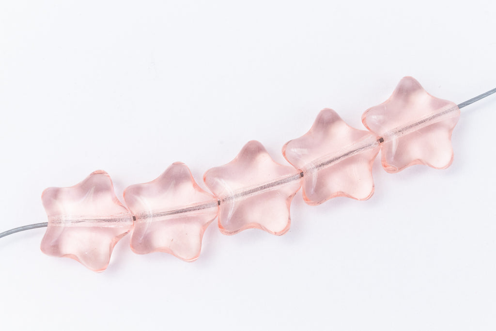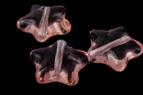12mm transparent rose pink pressed glass five point star bead.
