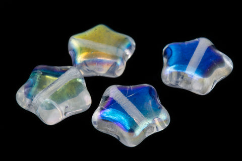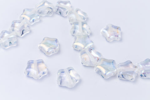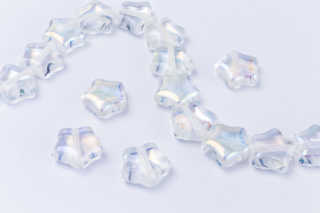 8mm transparent iridescent crystal pressed glass five point star bead.
