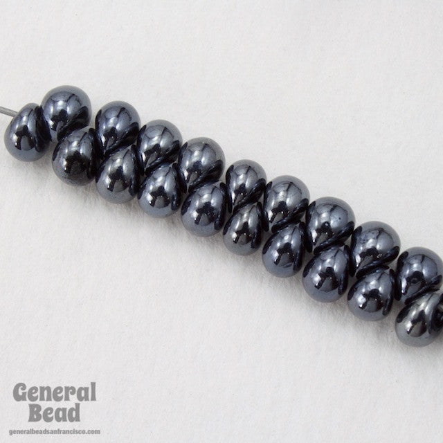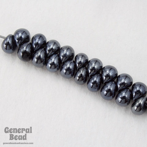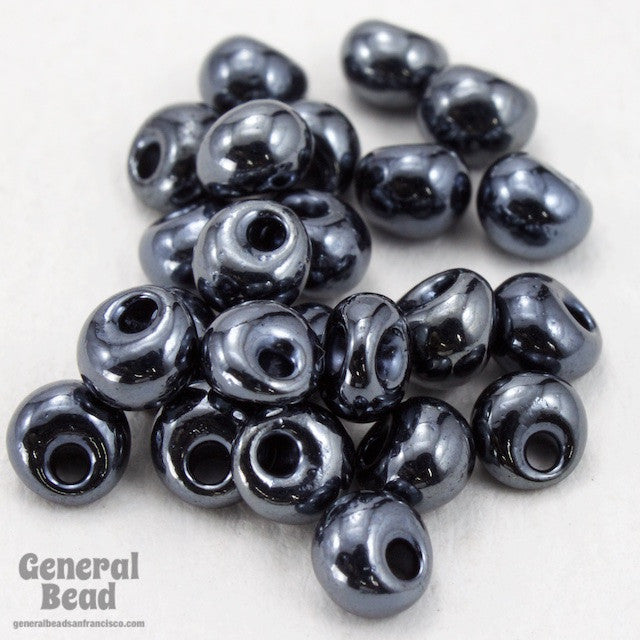 Size 5 shiny gunmetal glass raindrop bead.