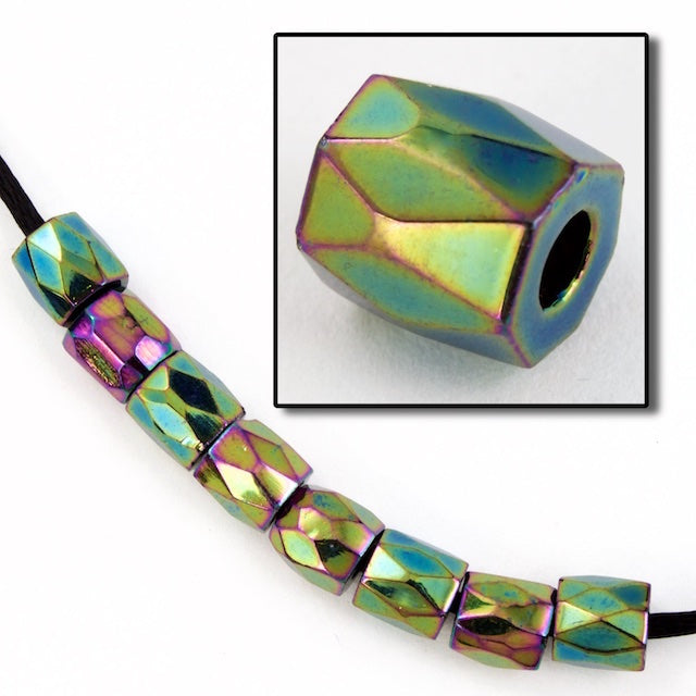 7mm x 7mm pressed glass "Fire polished" tube with lengthwise hole.