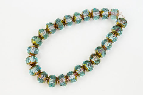 5mm x 7mm Green Aqua/Rose Gold Picasso Faceted Rondelle (25 Pcs) #GFD202