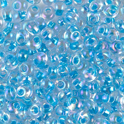 4mm x 4mm aqua lined iridescent crystal magatama.