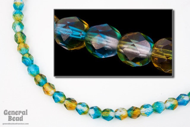 6mm Aqua/Topaz Two Tone Fire Polished Bead (25 Pcs) #FPX229
