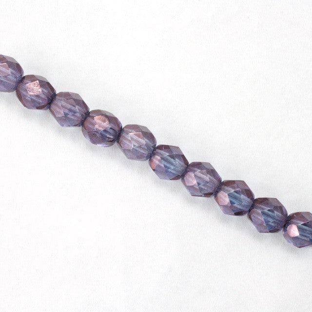 6mm pressed glass faceted round "Fire polished" bead.