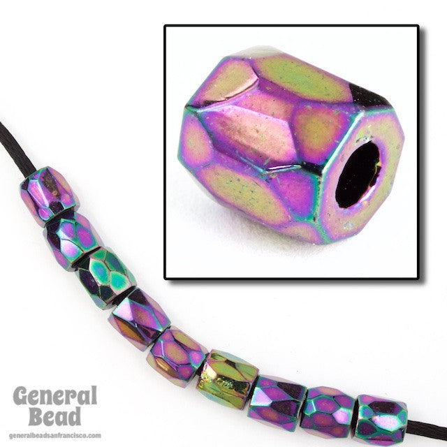 7mm x 7mm pressed glass "Fire polished" tube with lengthwise hole.