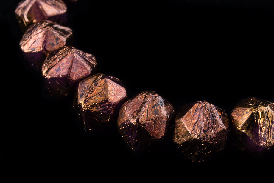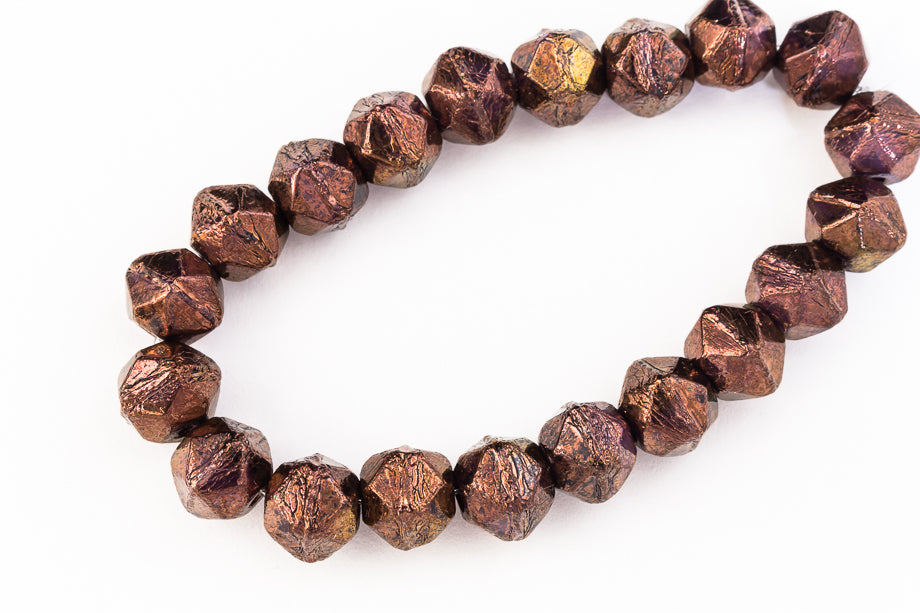 8mm metallic dark bronze amethyst "English cut" glass faceted bead.