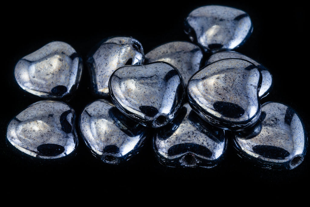 8mm gunmetal heart with vertical hole.Current manufacture from the Czech Republic.12 pieces per package.