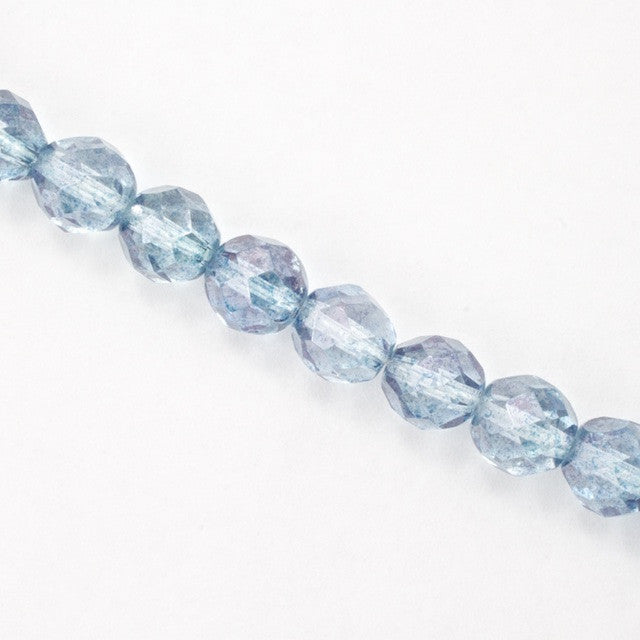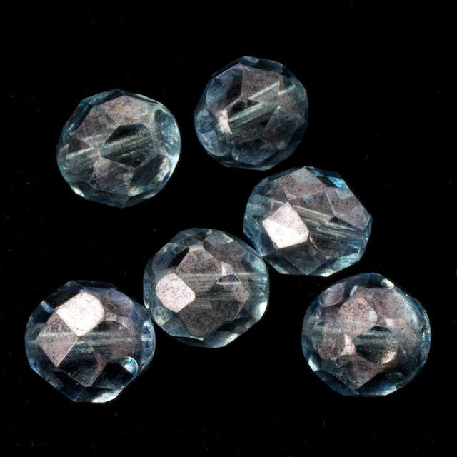 8mm pressed glass faceted round "Fire polished" bead.