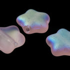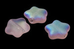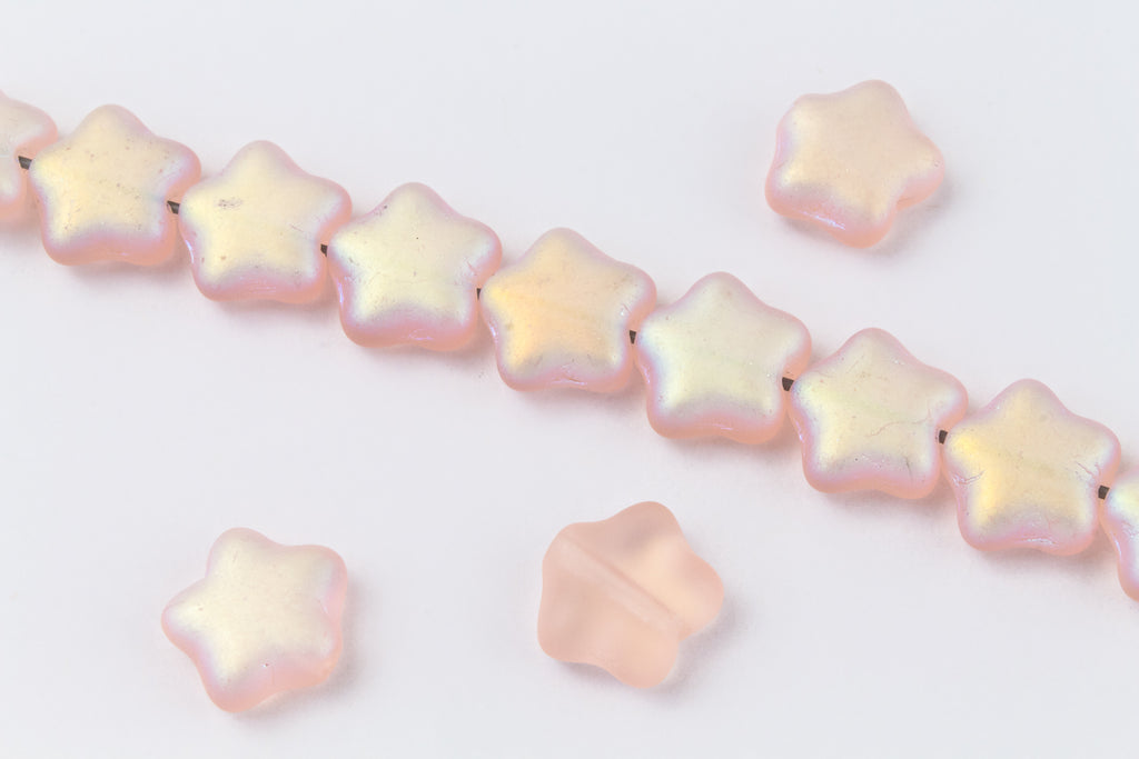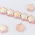 8mm matte transparent rose pink pressed glass five point star bead with iridescent sheen on one side.