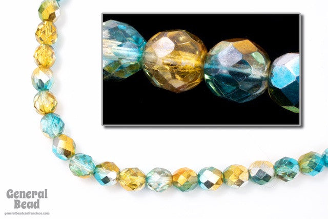 8mm Metallic Aqua/Light Topaz Two Tone Fire Polished Bead (25 Pcs) #FPX176