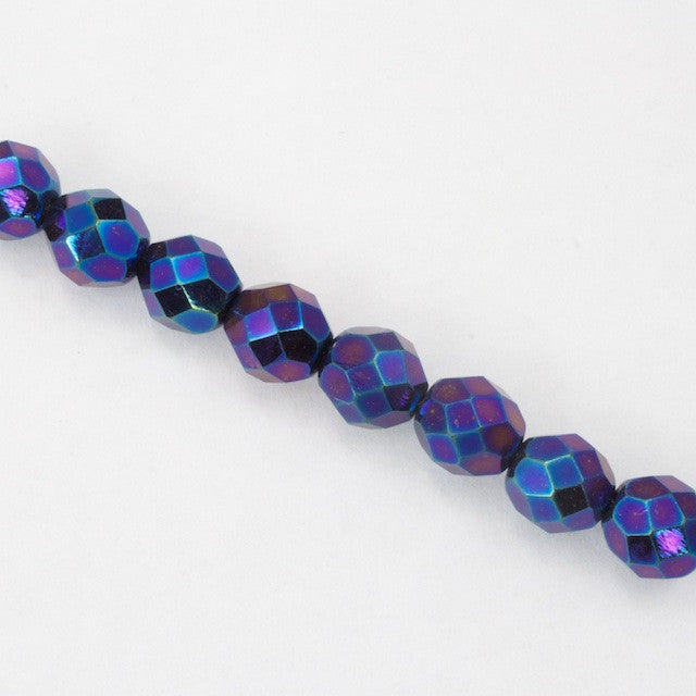 8mm Metallic Blue Iris Fire Polished Bead (25 Pcs, 600 Pcs) #GBF049