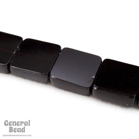 8mm opaque black flat square bead with hole.