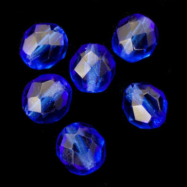 8mm pressed glass faceted round "Fire polished" bead.