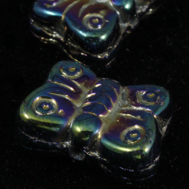 8mm x 10mm detailed butterfly with spirals on the wings and vertical hole.