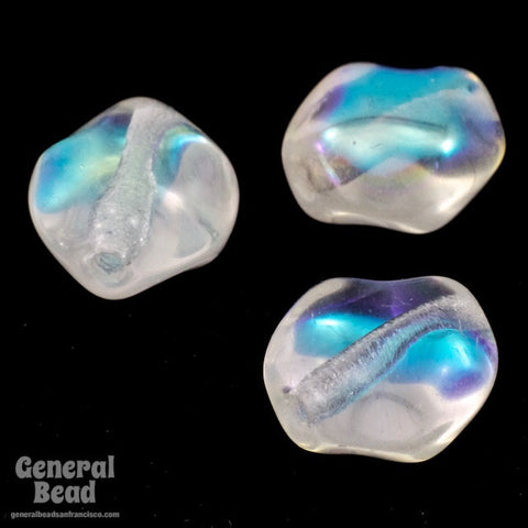 8mm x 9mm iridescent crystal pinched oval glass bead.