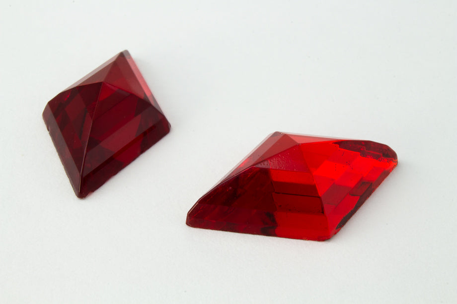 26mm x 16mm ruby faceted domed glass diamond shape cabochon.