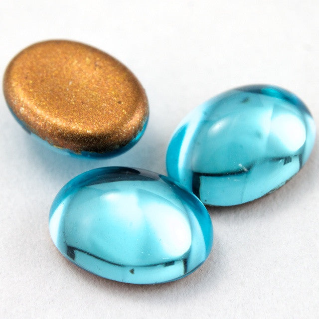 6mm x 8mm aqua smooth domed glass oval cabochon.
