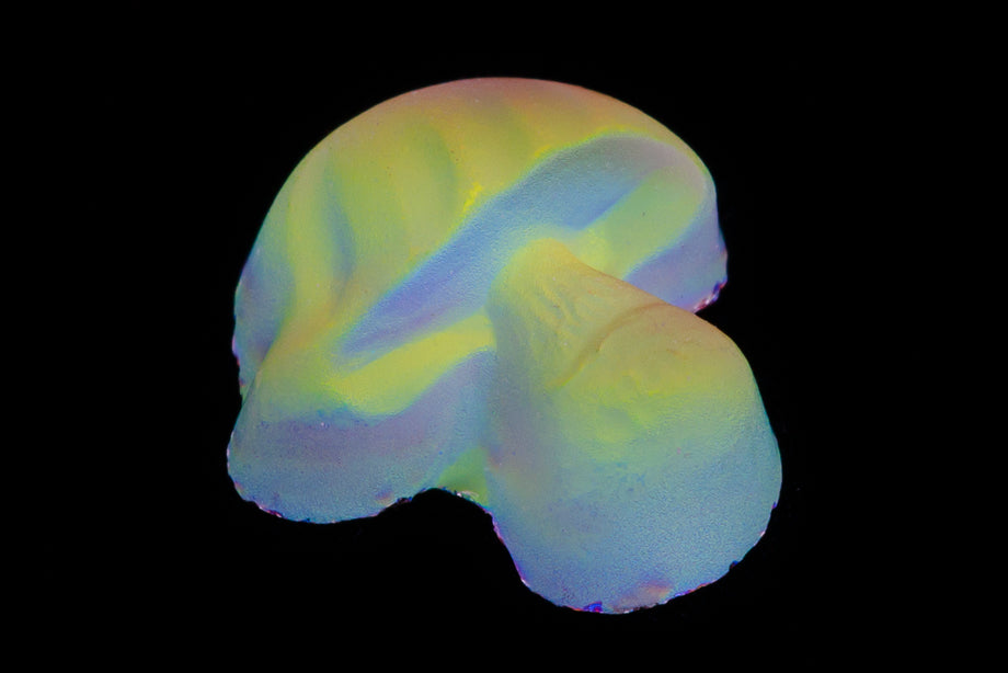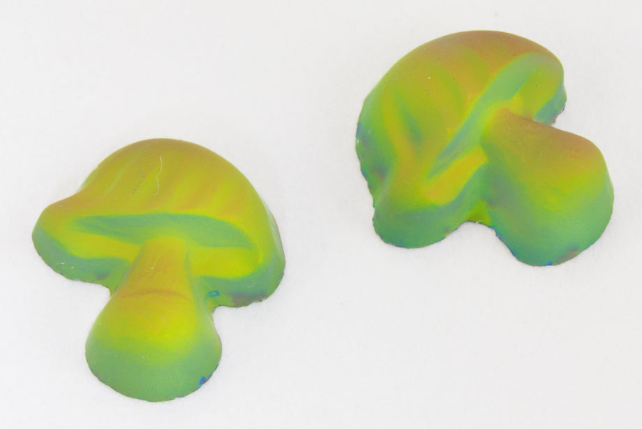 8mm x 7mm flat back mushroom shape pressed glass cabochon.