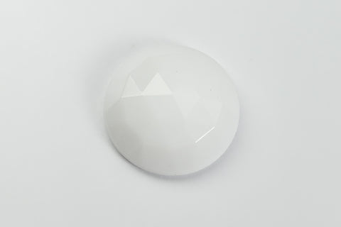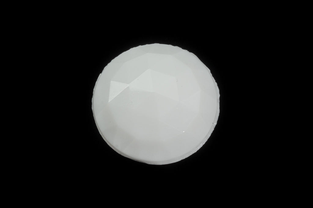Vintage glass cabochon.18.62mm opaque white low dome faceted round flat back. Made in Germany or the Czech Republic in the 1960's or earlier.Sold individually.