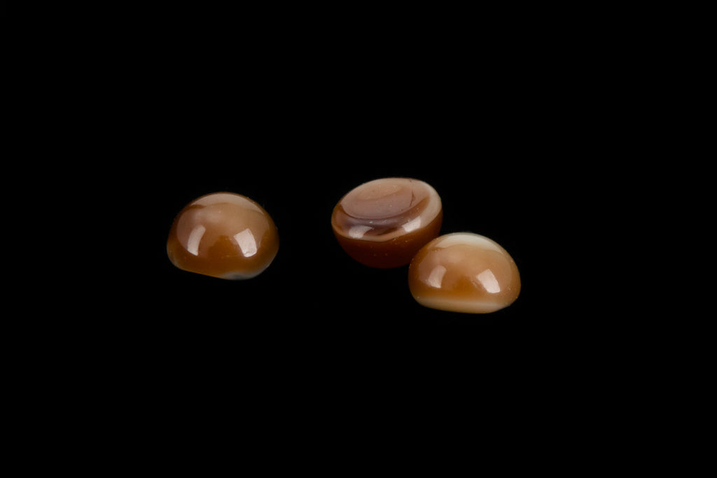 Vintage glass cabochon.3mm opaque brown domed round flat back.Made in Germany or the Czech Republic in the 1960's or earlier.4 pieces per package.