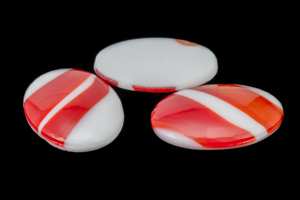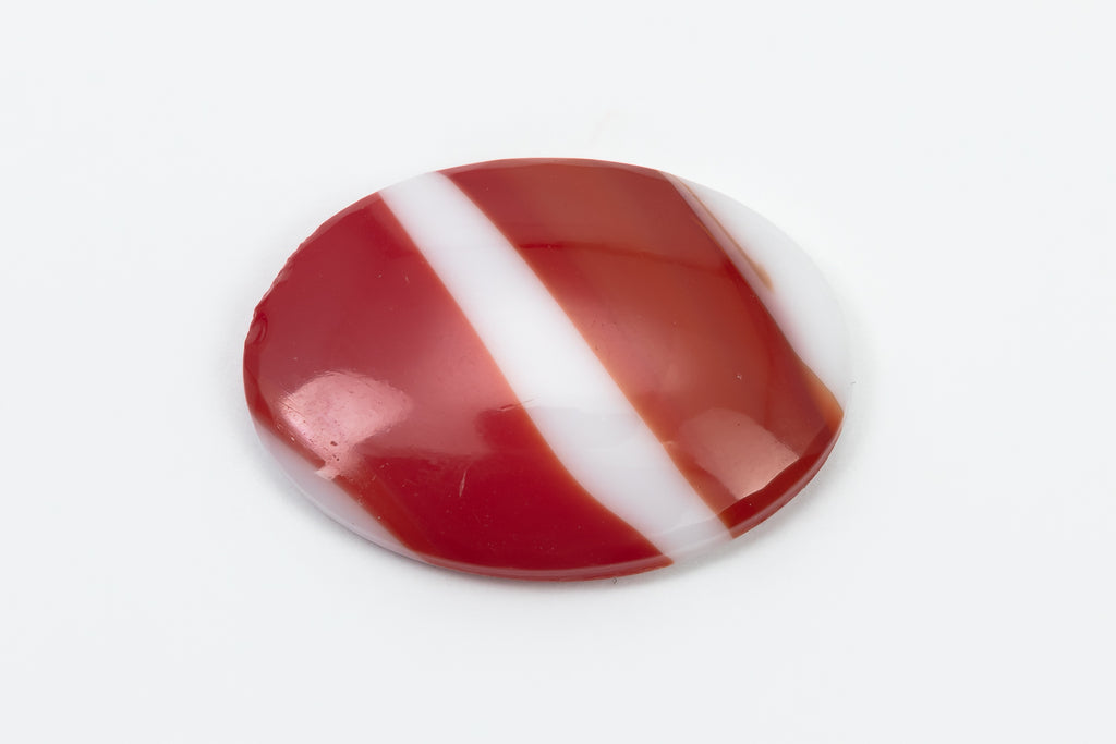 Vintage 18mm x 25mm White Oval Cabochon with Red Stripe #XS106-E