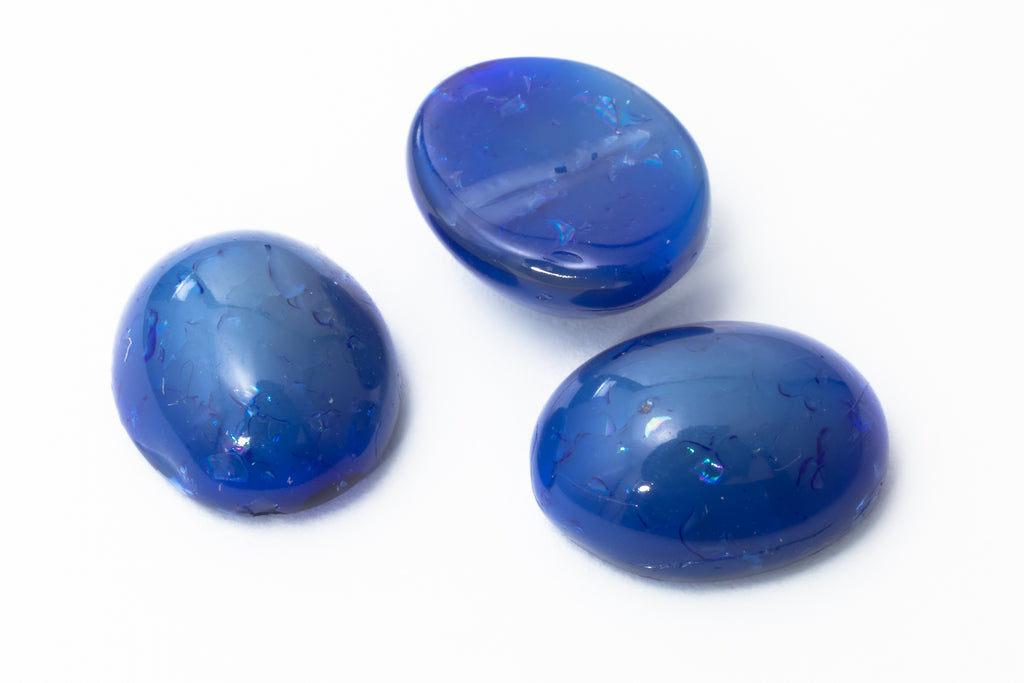 8.12mm x 10.1mm transparent blue crackle oval flat back with no foil.