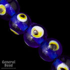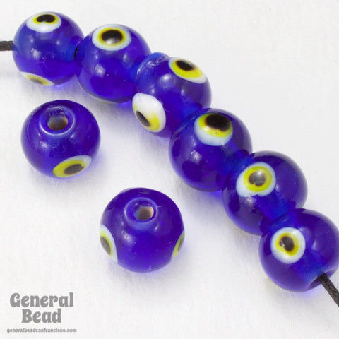 10mm cobalt round glass bead with white/yellow/black "eye" and 1.5mm hole.