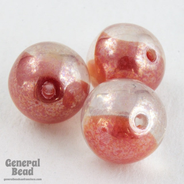 10mm pressed glass smooth round drum bead in transparent coral cloud.