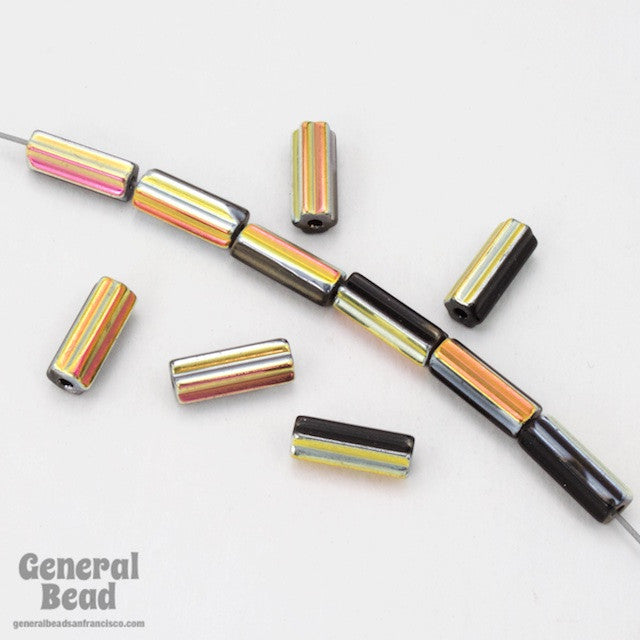 4mm x 10mm jet black and Vitrail Medium six sided tube with lengthwise hole.