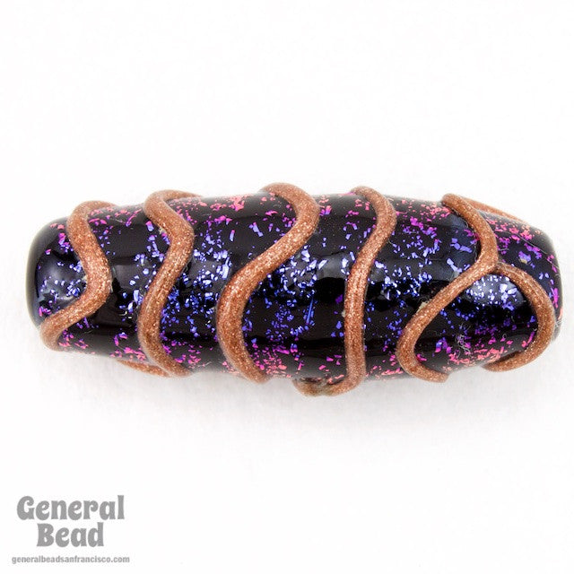 Dark blue and purple flecks on black background with copper squiggly lines.