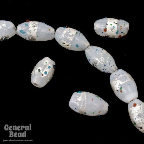 7mm x 11mm opal white glass oval with silver foil.