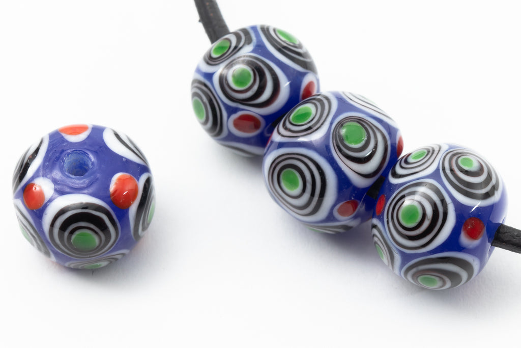 Blue background with black concentric circles and green and red dots. 1.5mm to 2.5mm hole.
