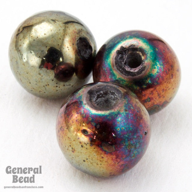 12mm round bead with iridescent metallic brown "oil slick" finish.